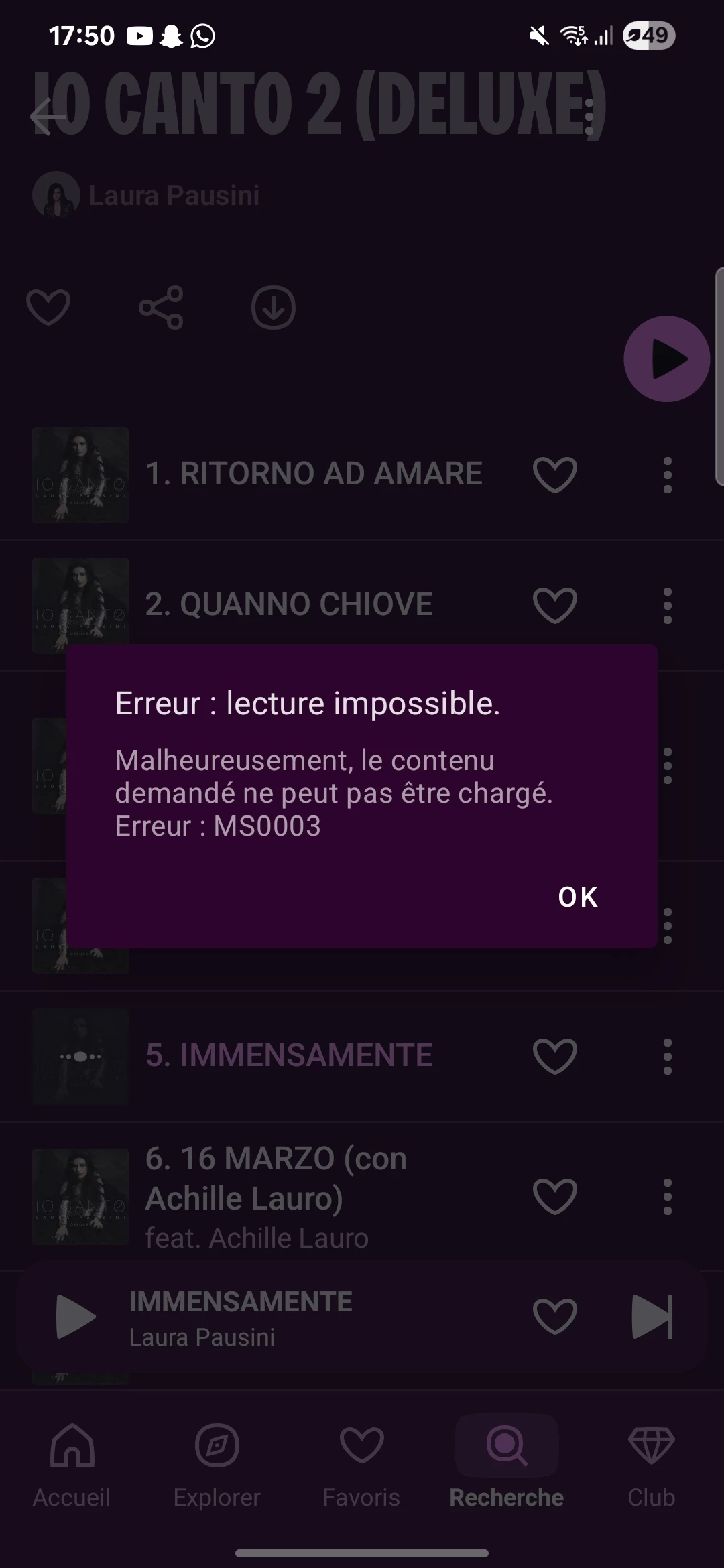 Bonjour, je ne comprends pas la lecture ne veut pas fonctionner uniquement sur l'album de laura pausini. Auriez vous une solution ?