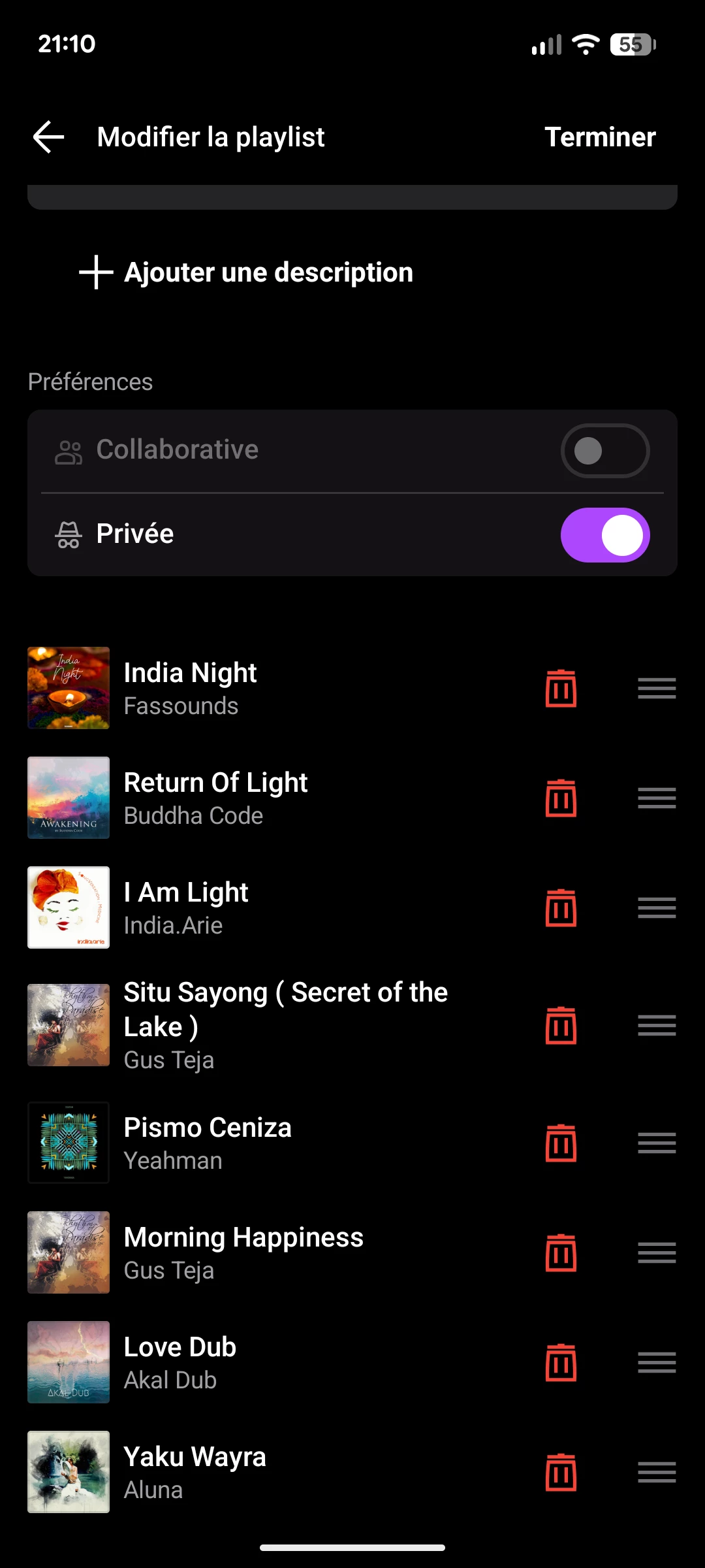 Bien que je mette à jours l'ordre de lecture de la playlist, lorsque j'enregistre les modifications en cliquant sur Terminer, rien ne change. J'utilise un Google pixel 7