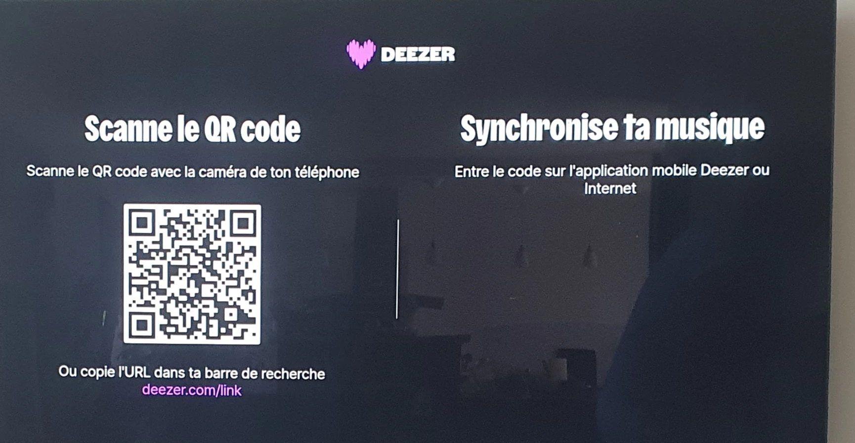 Nous essayons de connecter deezer à la télé. On nous demande de rentrer le code sur l'application mais aucun code n'est affiché.