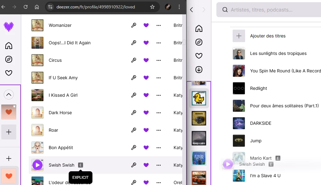 Je sais qu’on peut déjà copier rapidement un morceau via la souris mais vu que sur PC on peut ouvrir qu’une page Deezer on peut pas ouvrir deux playlist pour aller plus vite.