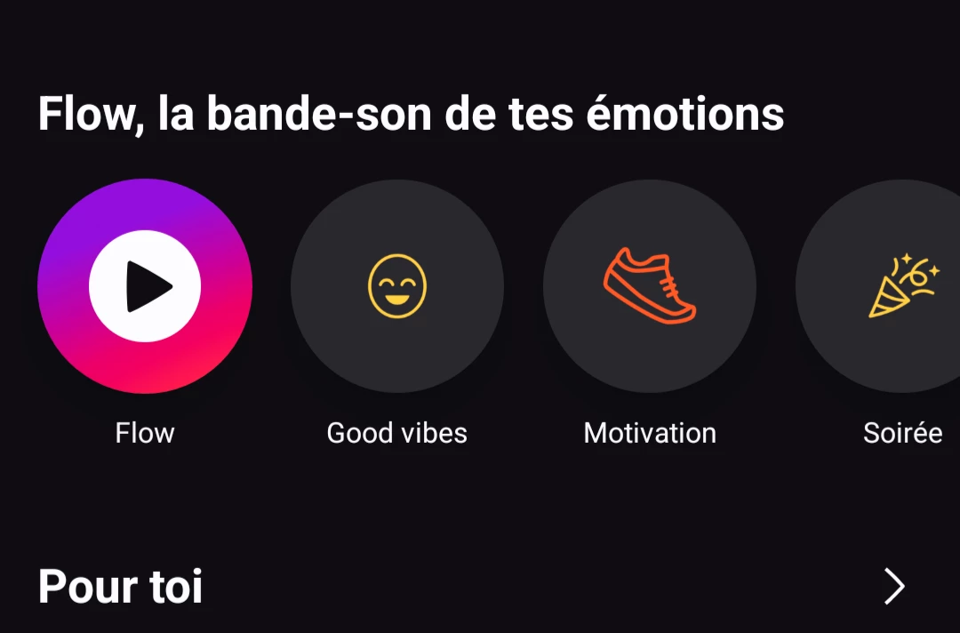 Je suis également sur cette version de l'application 8.0.39.2 sur android.. malheureusement de mon côté ça n'apparaît pas. Auparavant c'était la première proposition de flow après le flow normal, mais désormais remplacé par "Good vibes" et impossible de le retrouver via Search 🤷🏻‍♂️