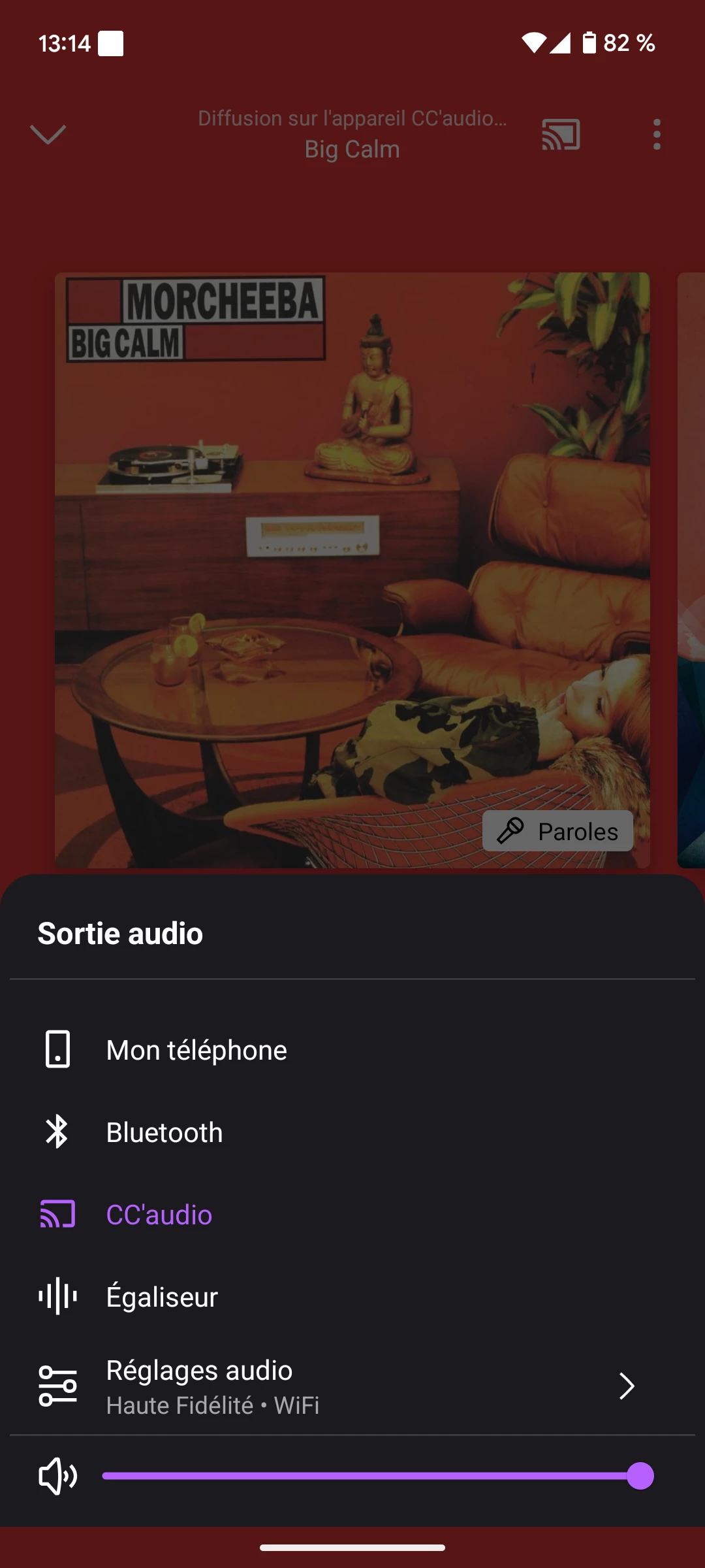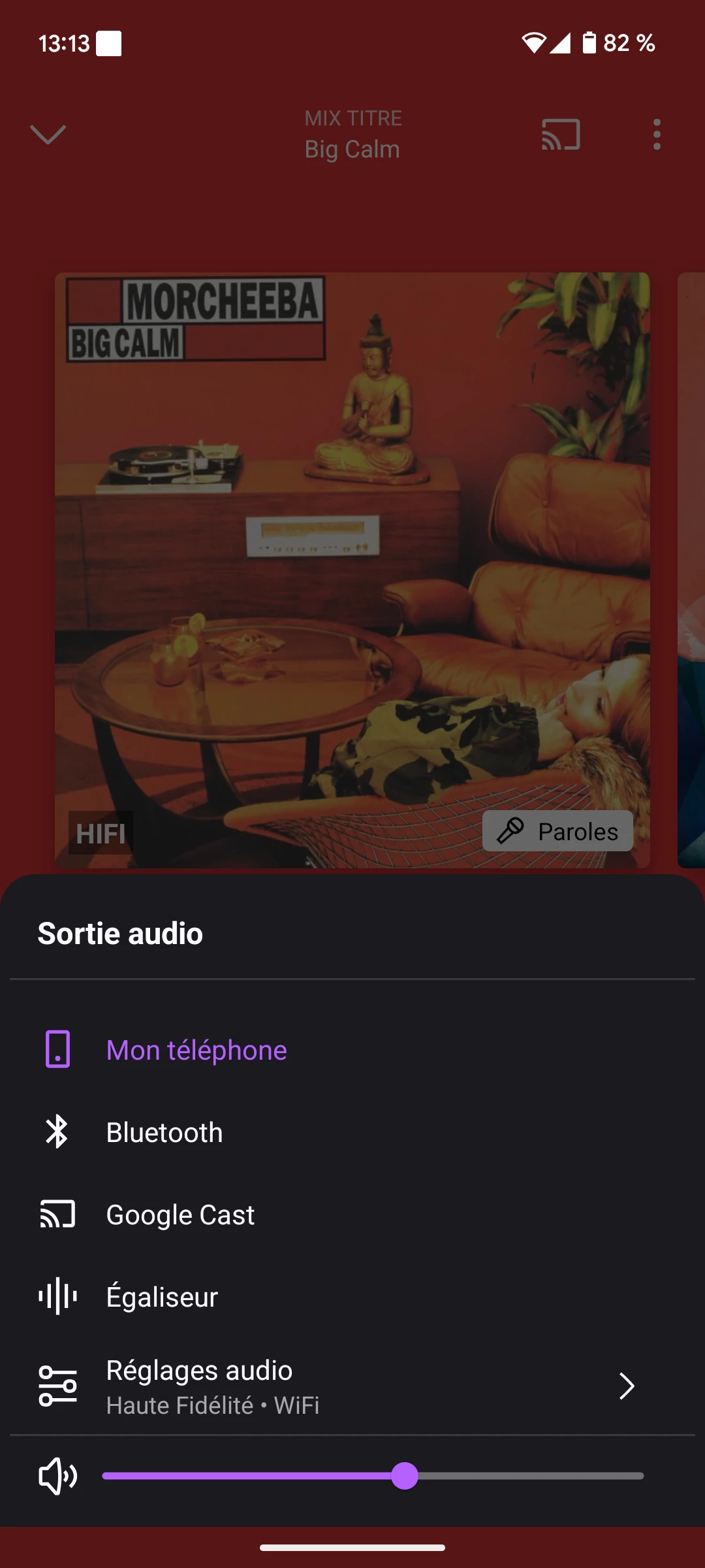 J'ai réglé la qualité de son sur Hi-fi pour la lecture sur Google cast, pourtant quand j'utilise ce mode de lecture, la mention Hi-fi n'apparaît pas sur la jaquette de l'album lu (elle s'affiche bien quand je lis la musique directement sur le téléphone). Comment savoir si la qualité est bien la bonne sur le Google cast ?