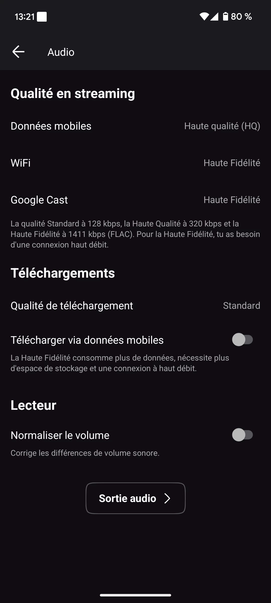 Même constat. Les réglages audio sont sur hi-fi mais à la bascule sur Chromecast on perd la mention hi-fi.