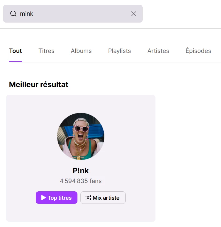 Et aussi sur un mot clés, la fonction de recherche actuelle met d' abord en avant les résultats “populaires” et bien loin après les titres ou artistes likés qui ont un rapport avec le mot clé, perso je trouve que l inverse ferait plus sens. Ou au moins rendre plus visible les éléments likés en lien avec la recherche.