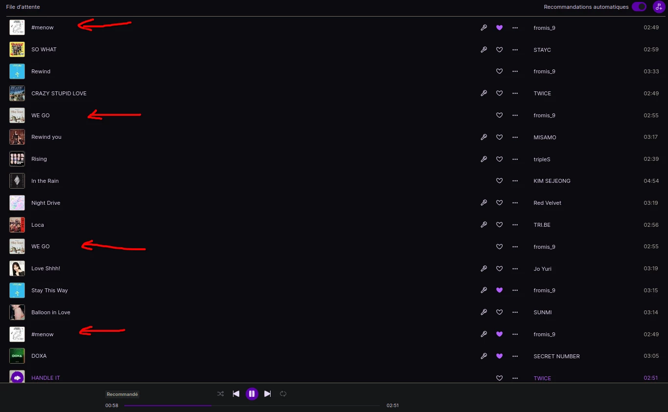 Dans tout ça, j’ai remarqué que quand on termine l’écoute d’un album, il passe en mode “Recommandé”, qui repasse les mêmes titres toutes les X chansons, et du coup bah ça boucle.