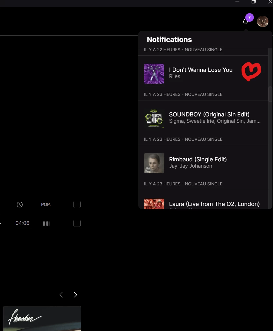 Ajouter bouton coeur pour les favoris dans la liste des notifications pour ajouter directement les nouveaux titres/albums dans nos favoris
