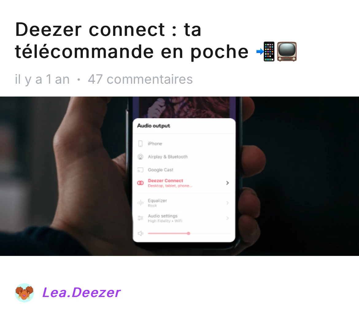 Ne serait-il pas plus cohérent de placer Chromecast dans la section Sortie audio, aux côtés de Deezer Connect, Bluetooth et AirPlay - comme dans vos visuels officiels ?