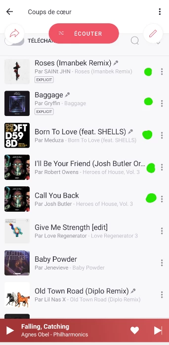 Enfaîte j’aimerais que les derniers titres ajoutés aux coups de cœur disponibles hors connexion; car se sont ceux que j’écoute le plus souvent.