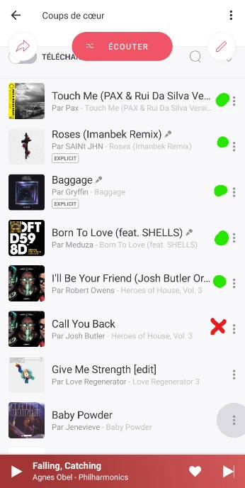 Ici le nouveau coup de cœur (Touch Me) est téléchargé, et le plus vieux de la liste (Call You Back) est retiré des téléchargements.