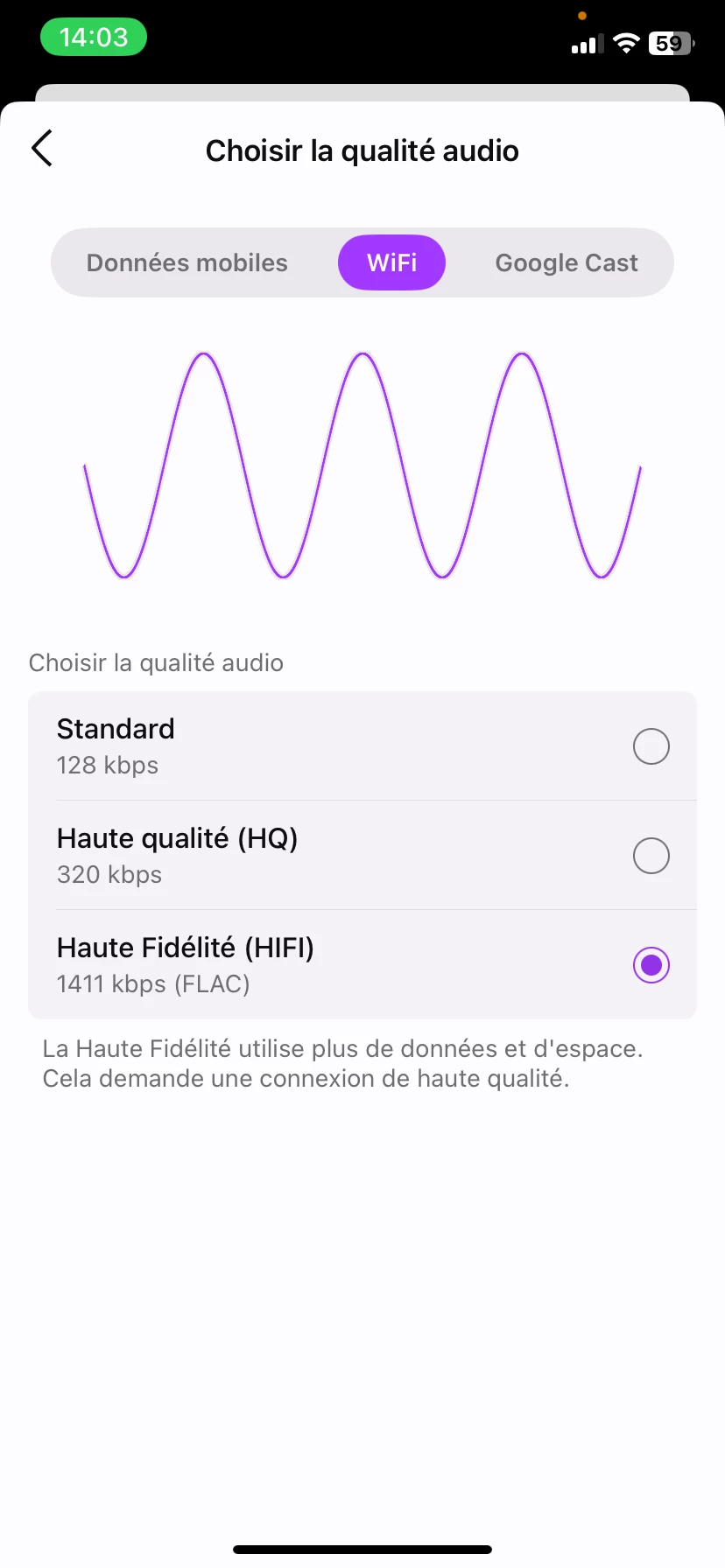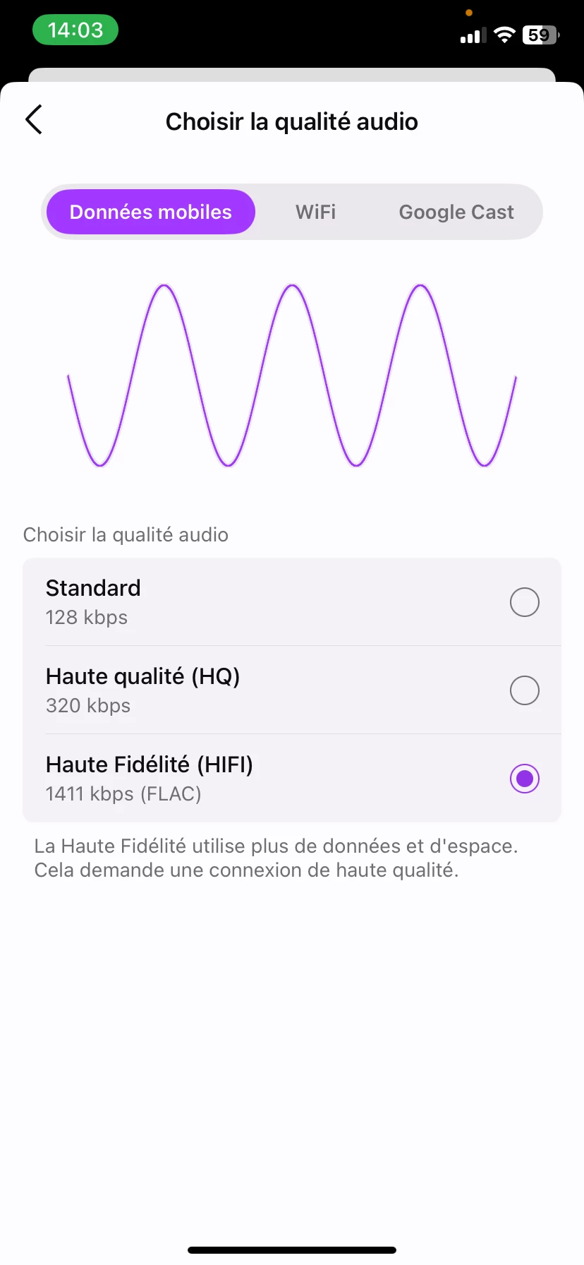Je constate que le réglage de la qualité audio ne fonctionne pas correctement. Dans l’appli IOS, lorsque je sélectionne la meilleure qualité audio, quelques jours après elle redescend à la qualité minimale. Je précise que mon réseau 4G est très bon, idem pour le WIFI, fibre optique avec une grande bande passante.