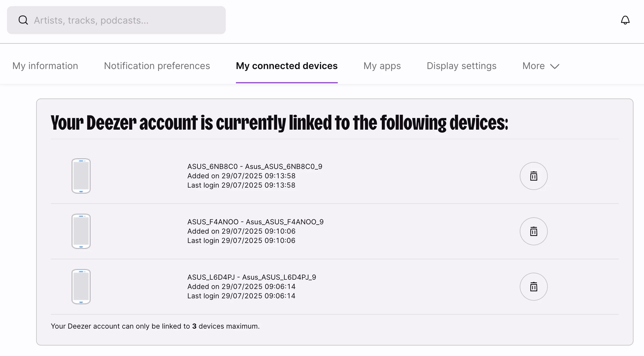 quand j’essaie de déconnecter les autres appareils j’ai