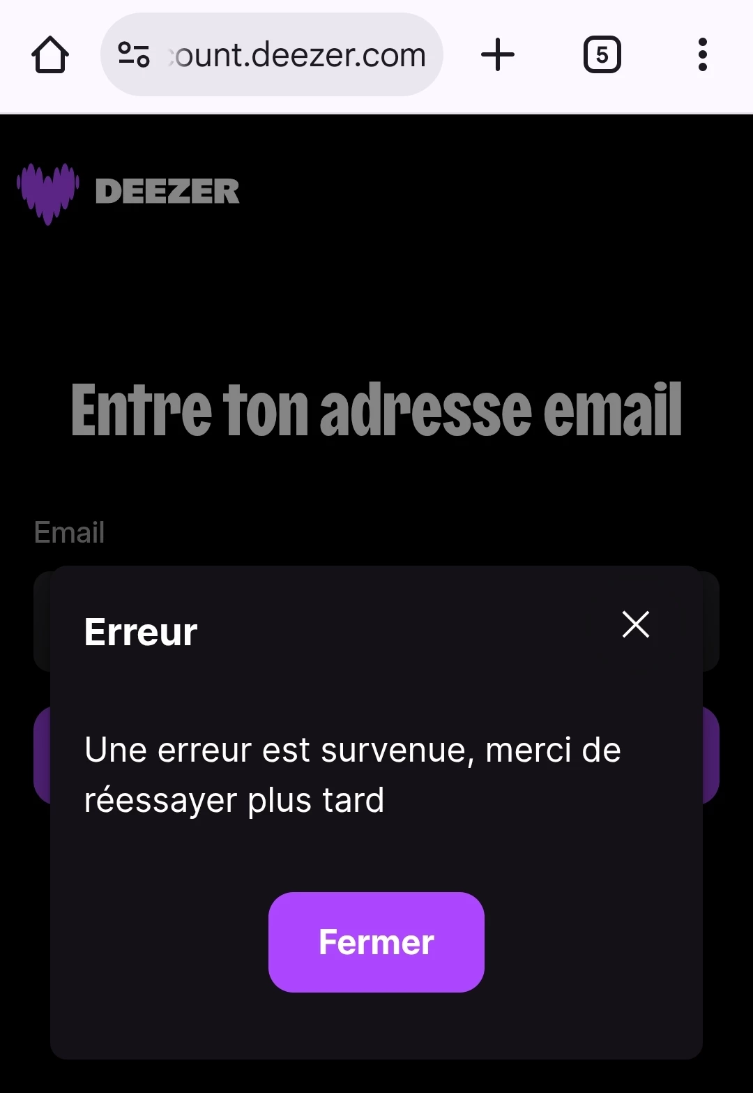 @Donathelio je t’invite à envoyer ta demande à notre service client afin de résoudre ce problème : https://support.deezer.com/hc/fr/requests/new