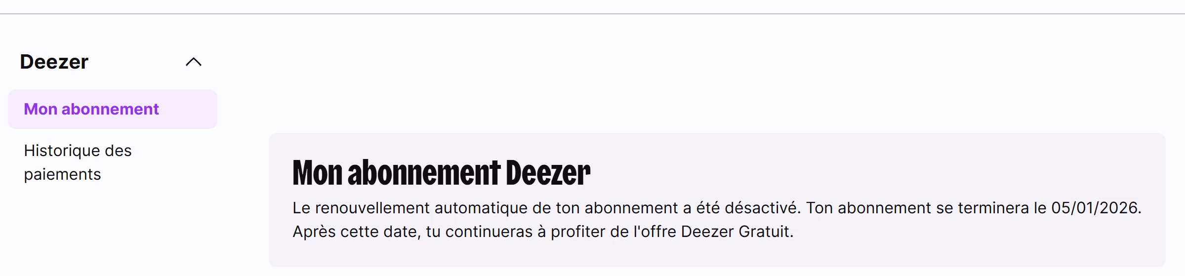 J’essaye tant bien que mal de changement le mode de paiement de mon abonnement Deezer famille.