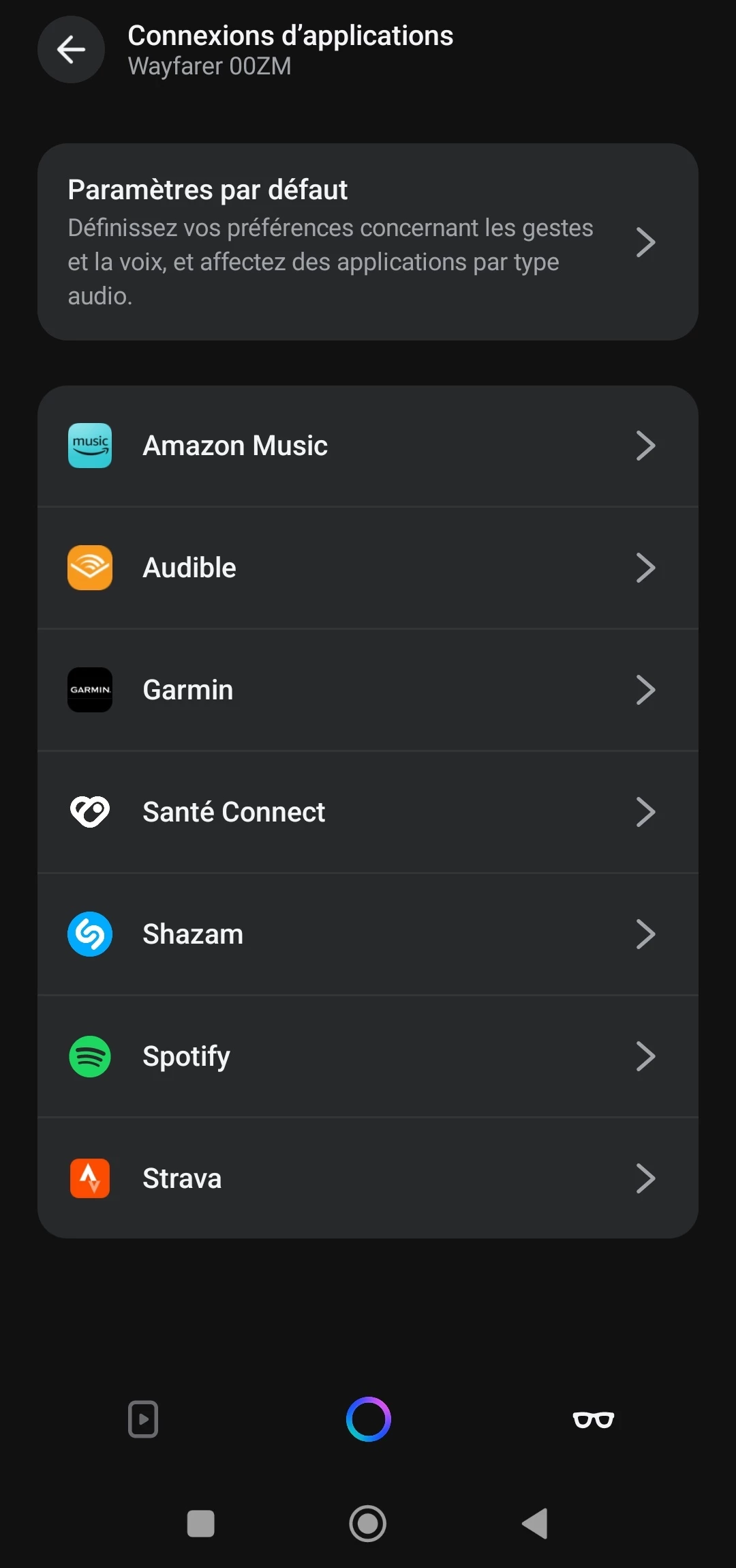 Une fois connecté, vous pouvez sélectionner « Musique » dans l'interface de vos lunettes et contrôler la lecture, y compris la diffusion depuis Deezer, par la voix ou via l'interface de l'application.