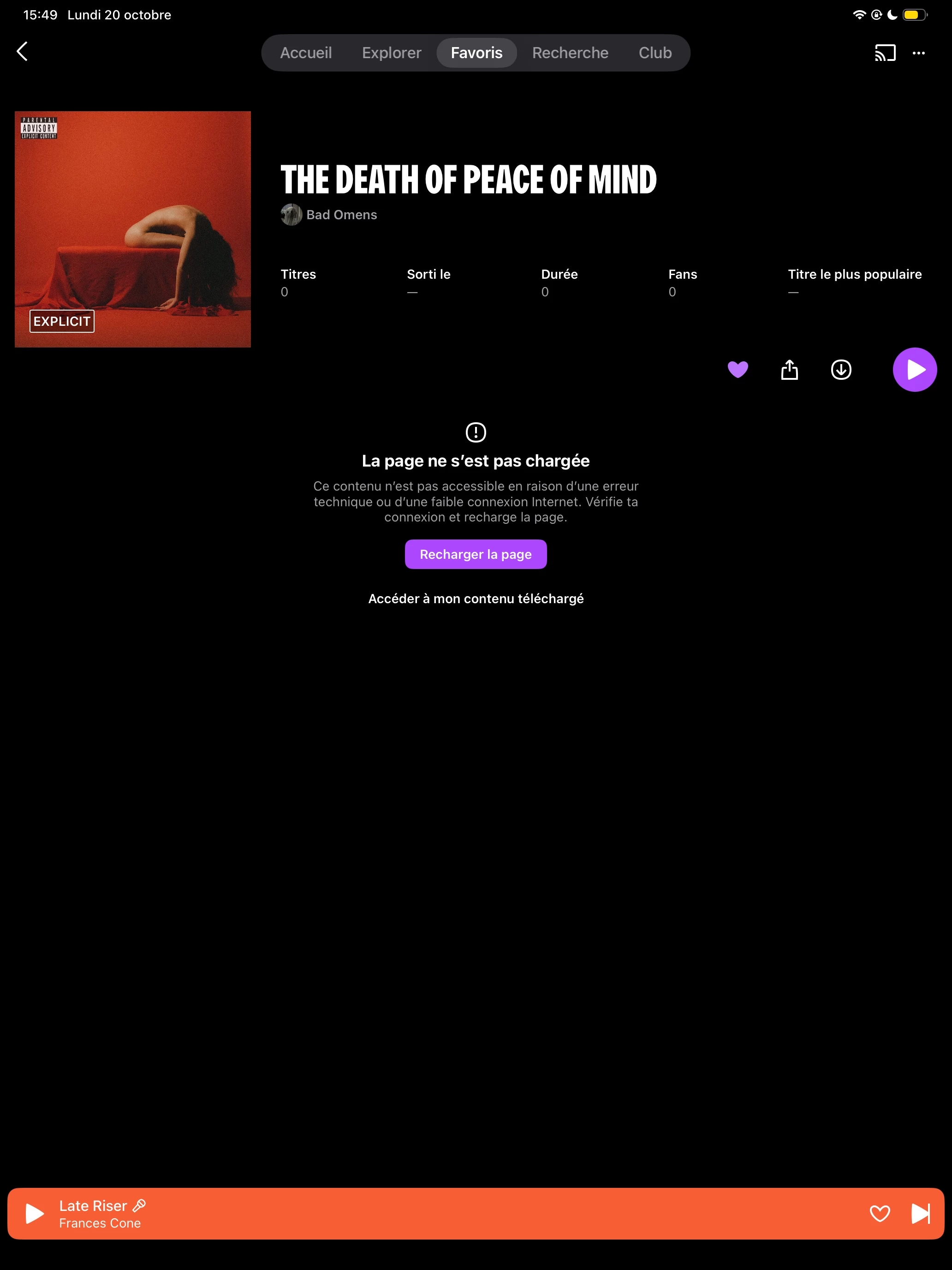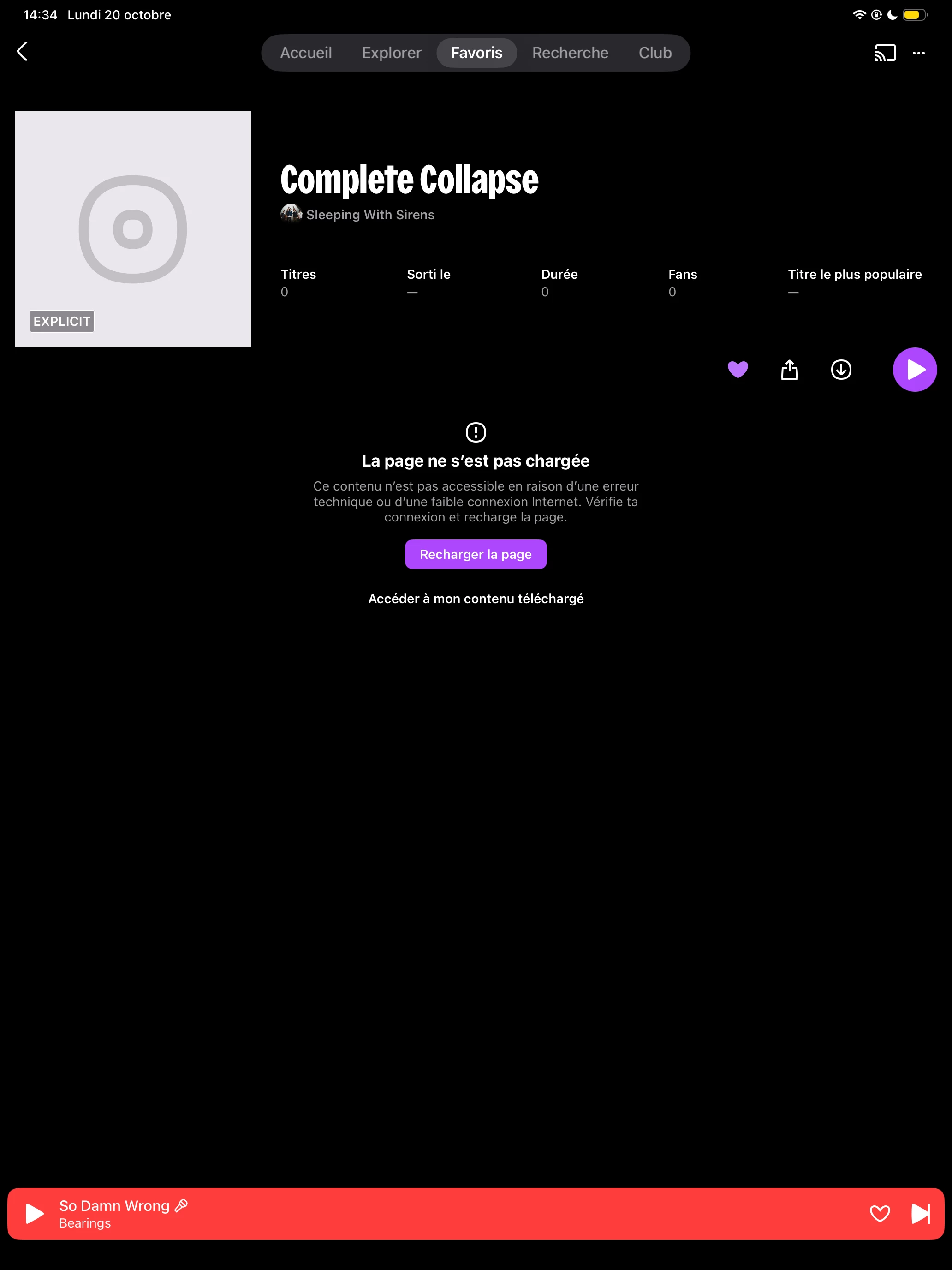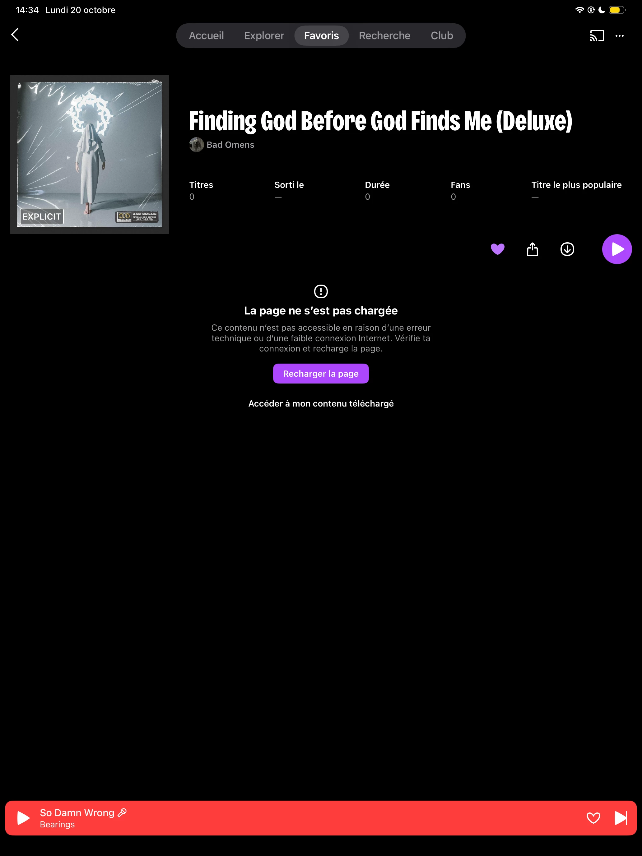 Hop encore 4 albums en favoris qui disparaissent en étant favoris 😂😂😭😭 j’avais actualiser ya 18 jours tout manuellement et comme sur l iPad Pro je les téléchargent tous