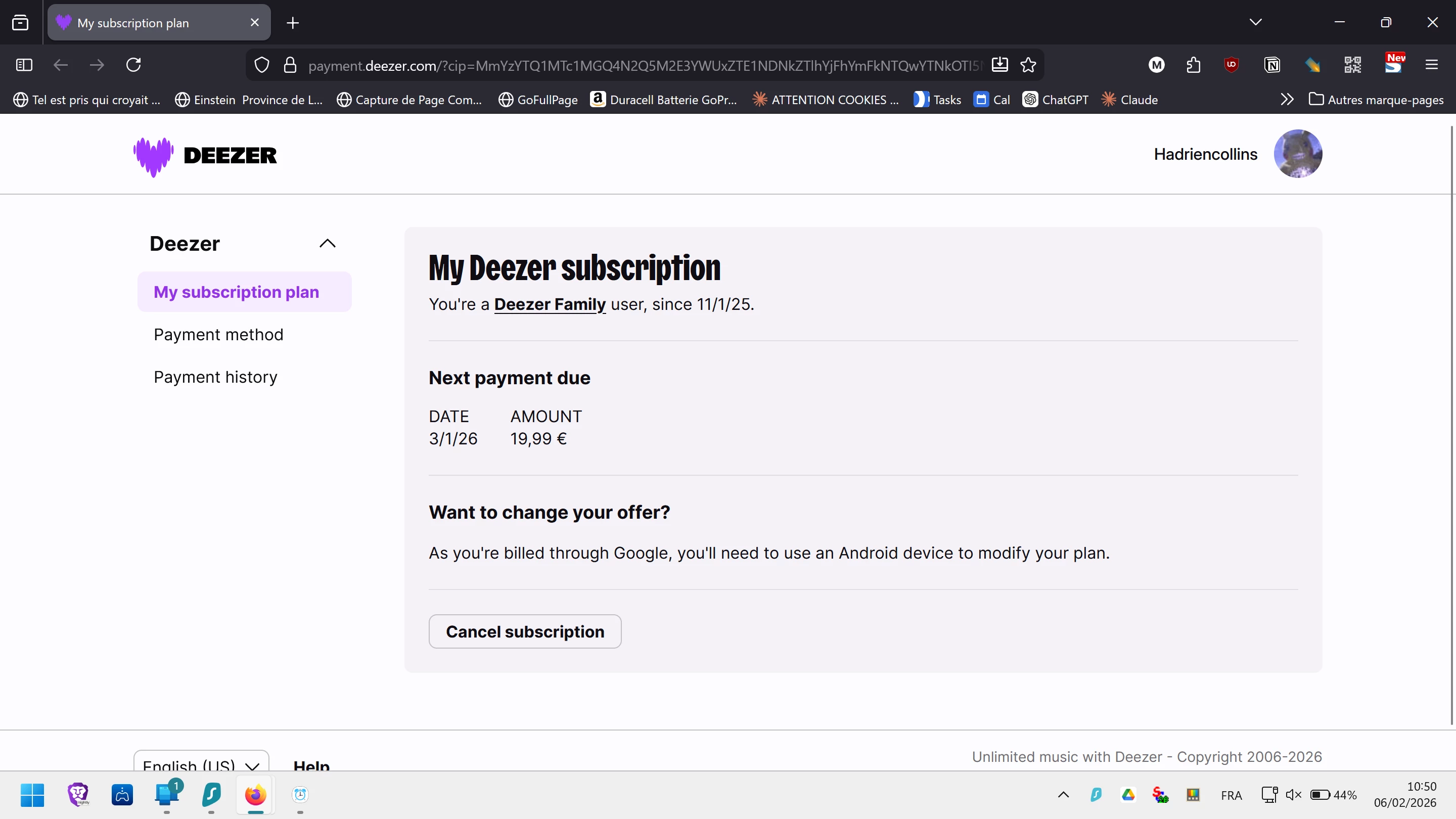 Deezer ne répond plus. Mon abonnement famille est supprimé le 5ème jour du mois à 12h12. Si c’est pas bizarre ?!? J’ai envoyé un mail à