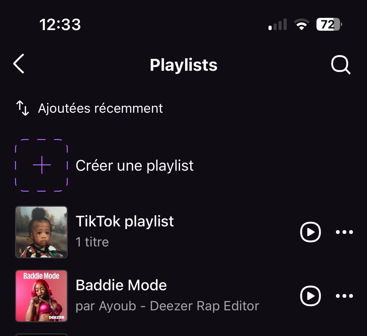 Je me permets de vous contacter au sujet d'un problème que je rencontre avec l'ajout de musiques sur TikTok. Auparavant, j'avais accès à cette playlist , mais celle-ci a disparu, alors même que je continue d'ajouter des musiques via l'application.