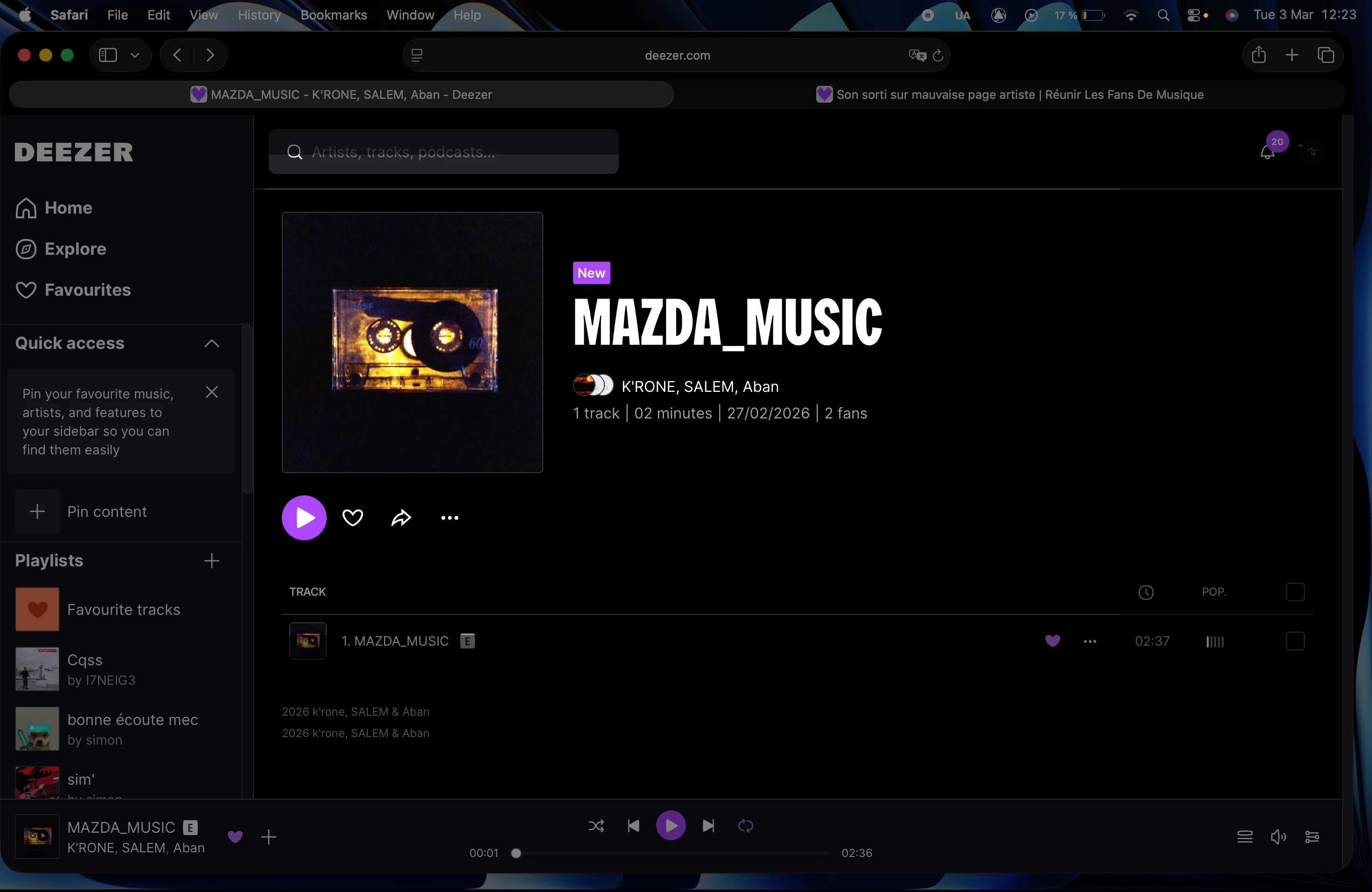 bojour, j’ai sortit un single et bientôt un ep avec 2 amis mais mon compte a été lié a quelqu’un d’autre écrit tout en majuscule. (je distribue ma musique avec tunecor et pour l’instant c’est le premier titre que je sort)
