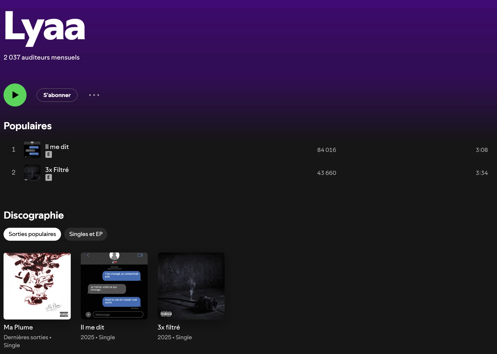 à mettre ici: https://www.deezer.com/fr/artist/169424877