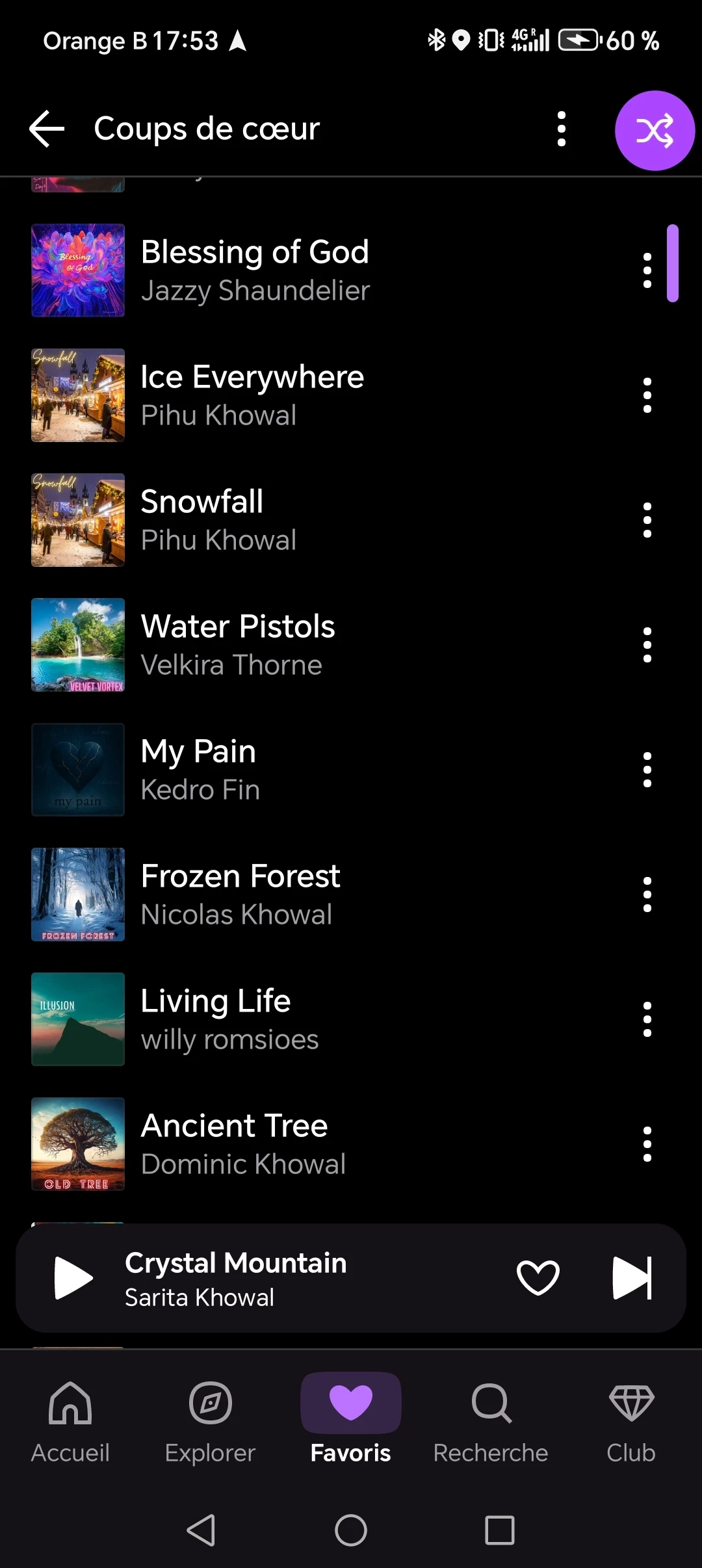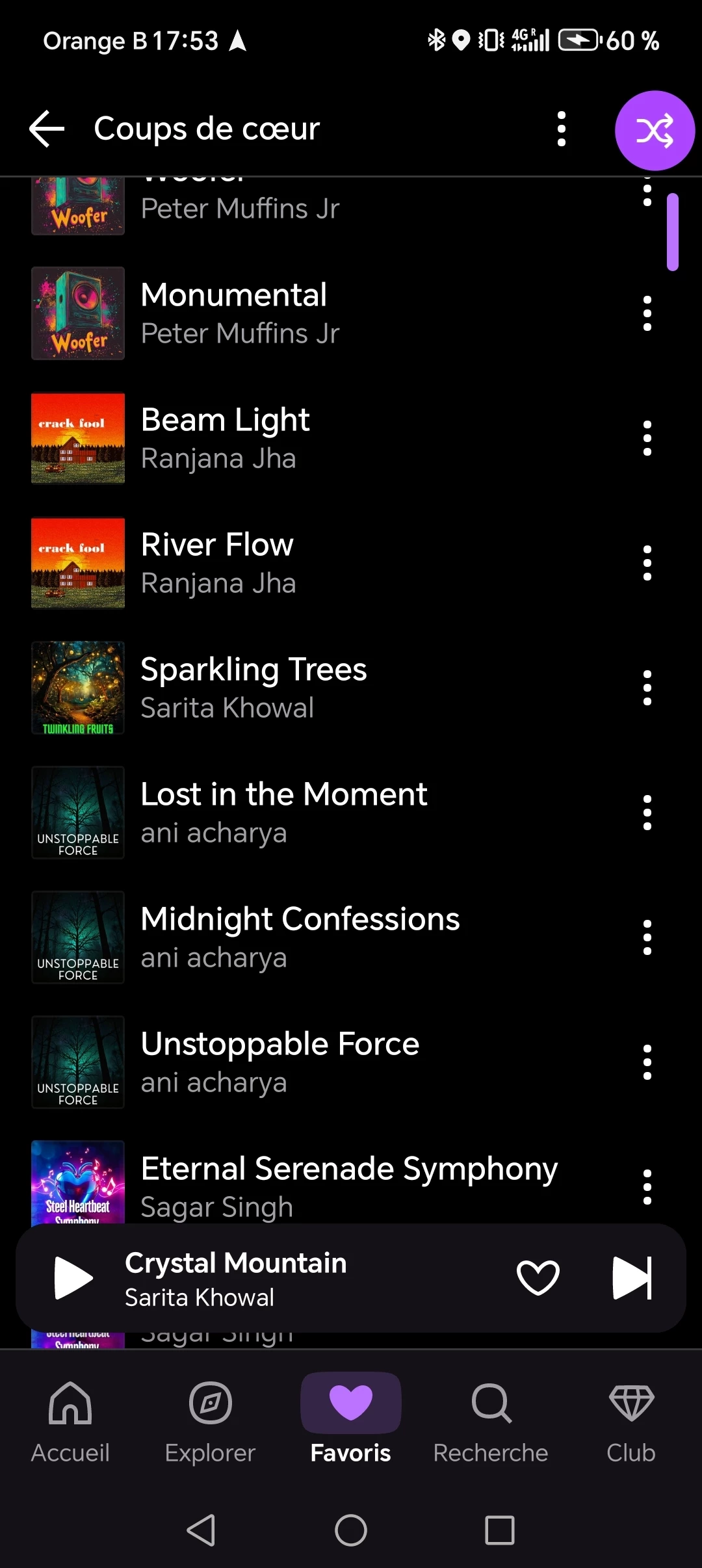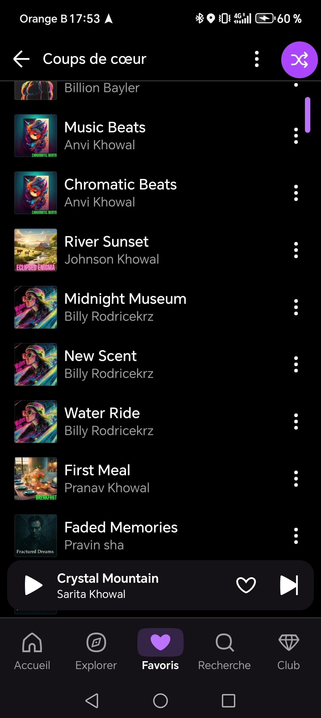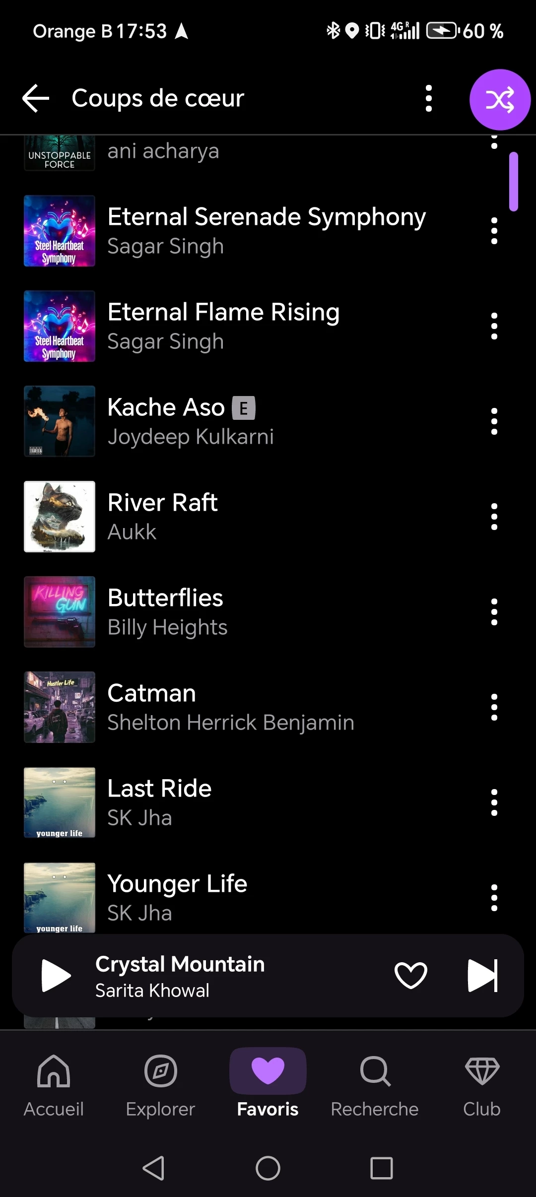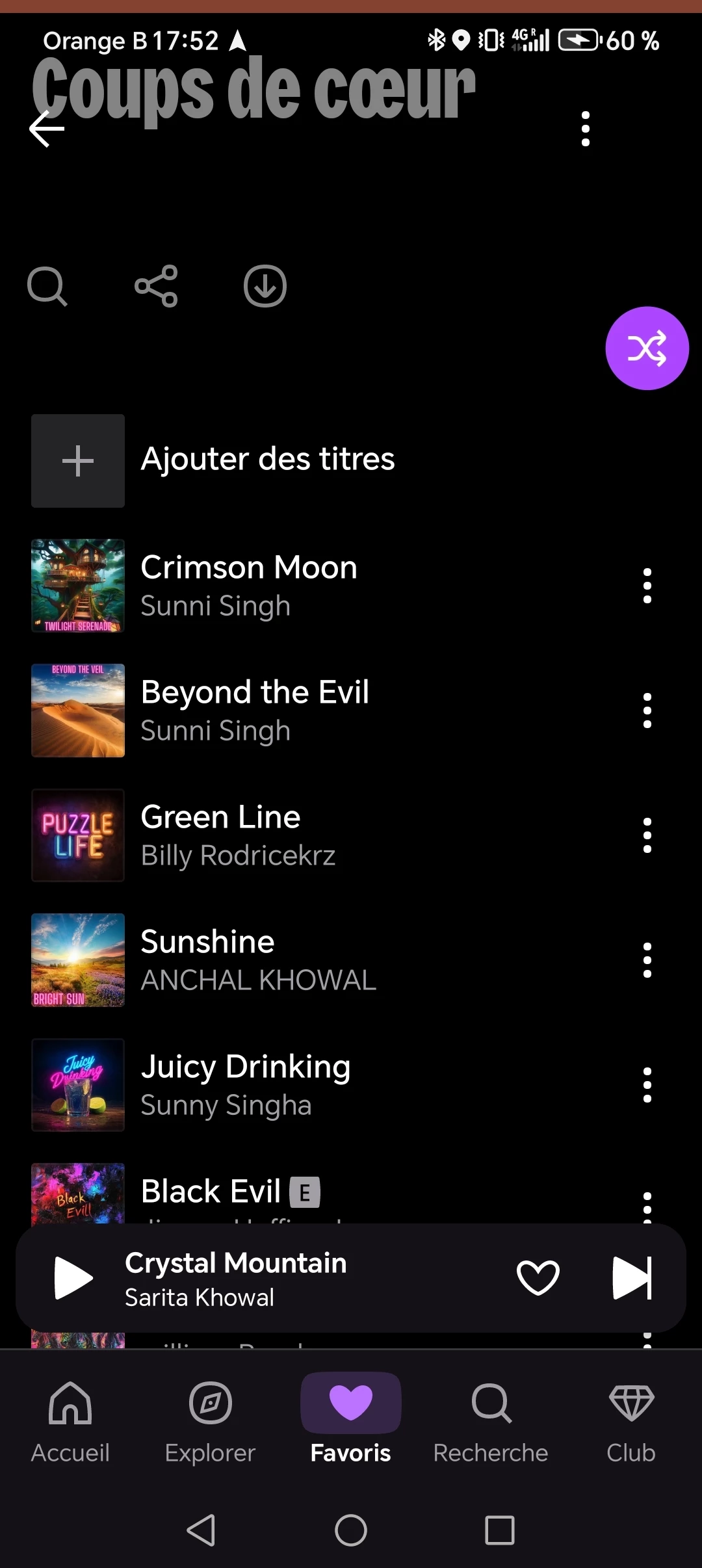 Ajout automatique de chanson IA dans mes coups de cœurs ????