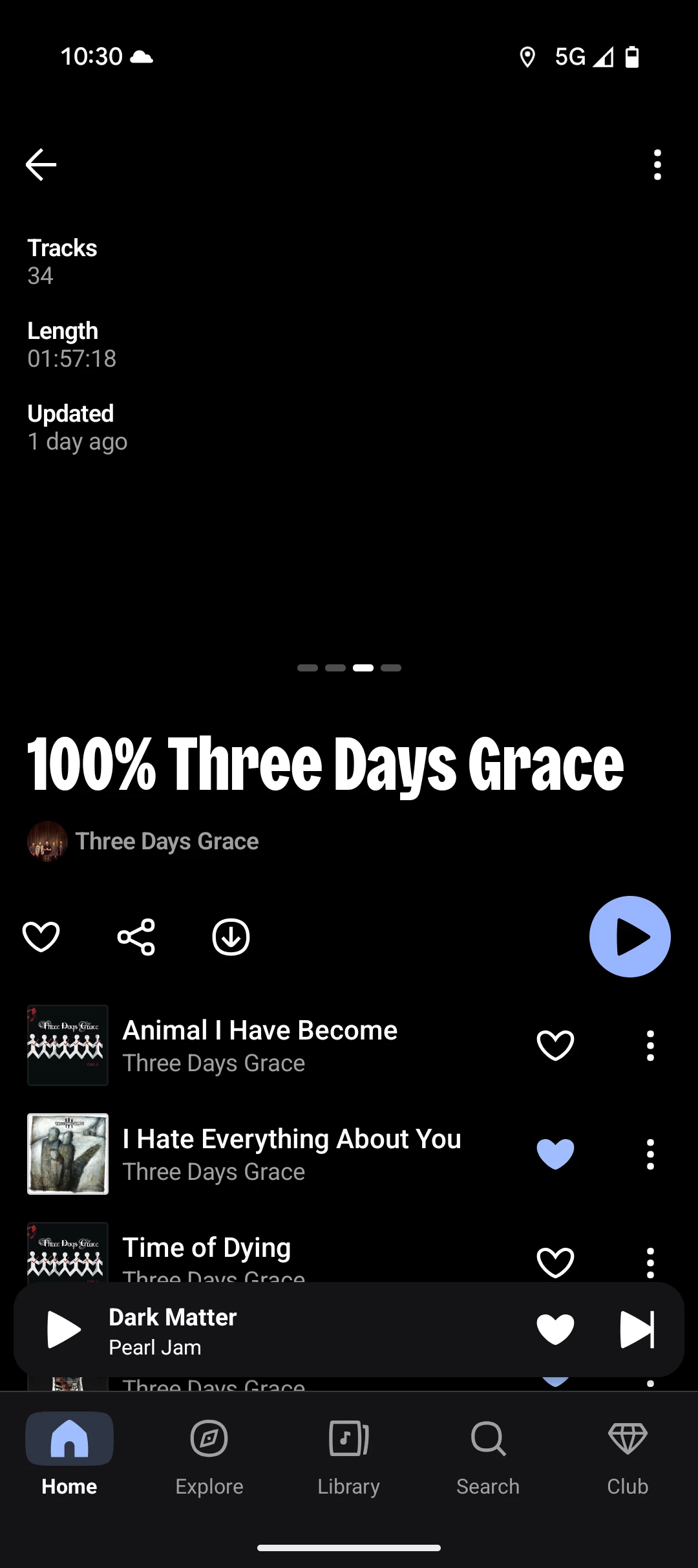 Étant un grand fan des playlists 100%, j'ai eu le malheur de constater depuis deja 2 ans que la playlist 100% de Three Days Grace contient deux "titres" qui sont des extraits d'interview et non des chansons... Serait-il possible de mettre à jour la playlist en les retirant svp. J'ai signalé plusieurs fois la situation mais rien…