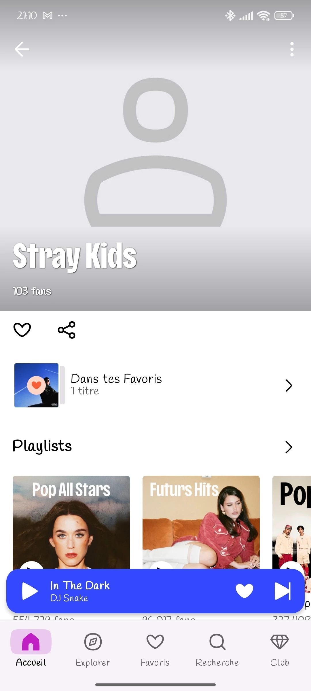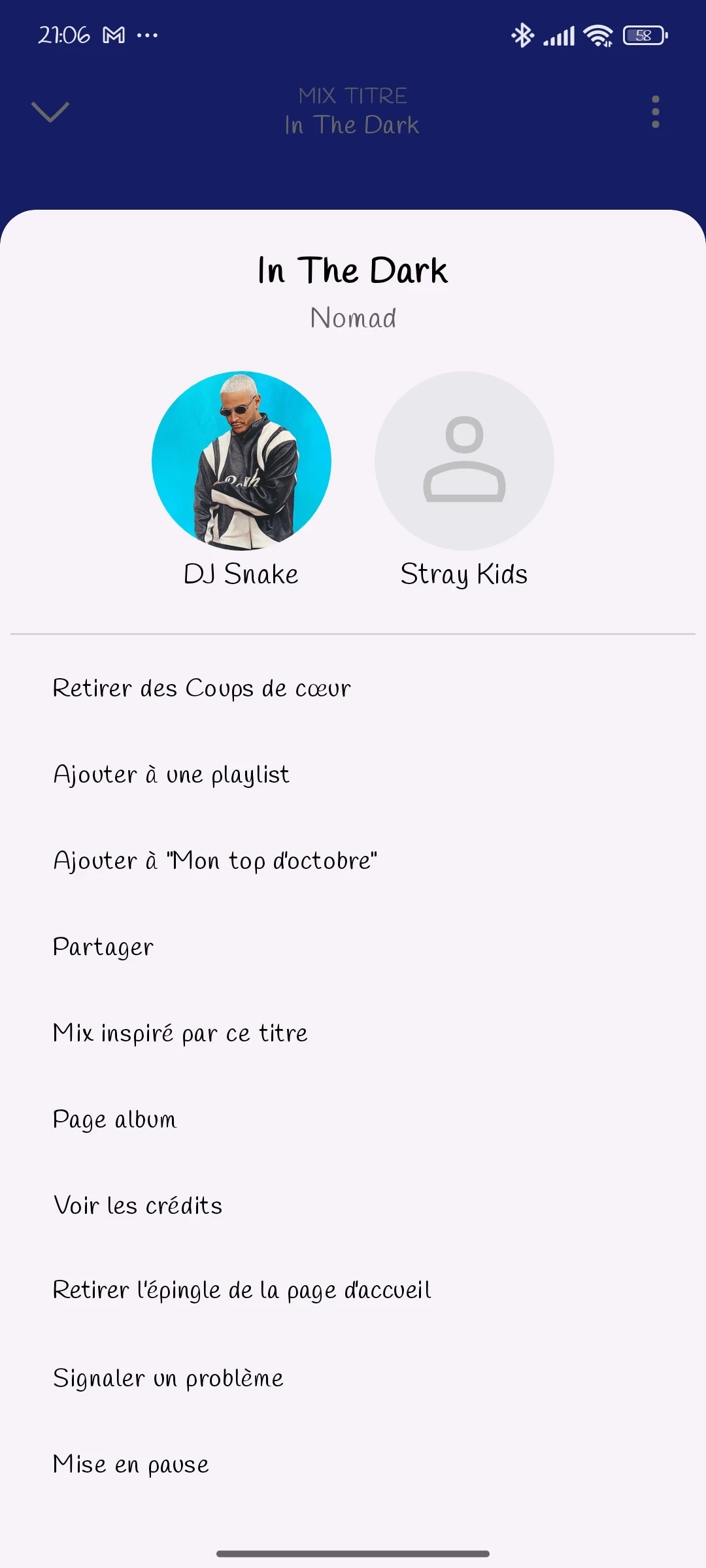 Je voudrais signaler une erreur sur la chanson “In the Dark” de DJ Snake et Stray Kids (lien: https://link.deezer.com/s/31yJvamGWxcwLxYeTTn9h)