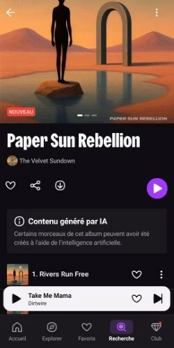 J’ai fait un signalement il y a une semaine sur ce groupe “The Velvet Sundown” sans compter les infos nombreuses qui circulent sur Internet et pourtant cette merde est toujours en ligne. Pourquoi ? C’est impossible que vous en ayez pas parlé chez Deezer, donc quelle est l’objectif ? Laisser les contenus IA gen sur la plateforme ?