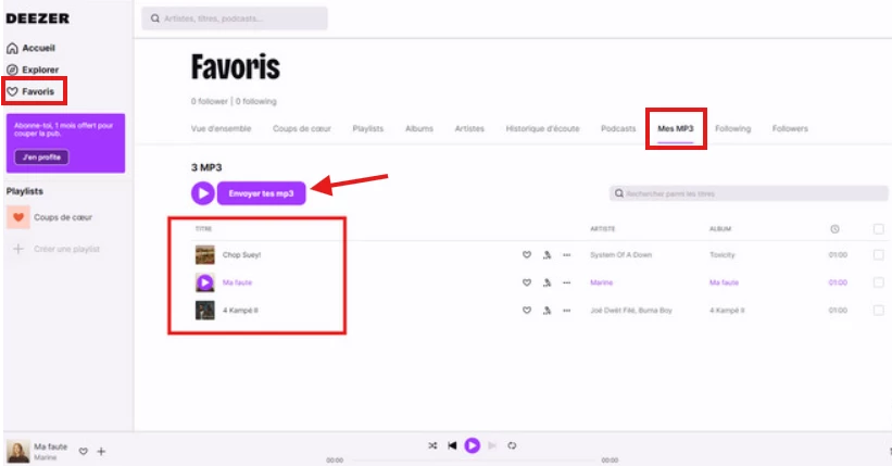 Mais j'ai pas eu toute mes musiques, je sais qu'il marque si ya des musiques manquantes. Mais la c'était marqué que 69 musique c'était bon et une manquantes mais en allant sur Deezer je vois que 28 titres.