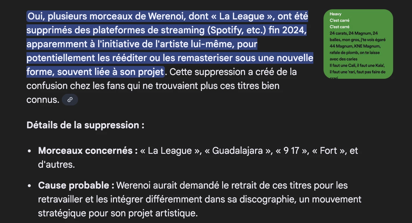 Hey ​@Bruny, notre équipe a été contactée pour modifier la date de sortie. Pour ce qui est de “La League”, le son avait été retiré de plusieurs plateformes il y a un moment.